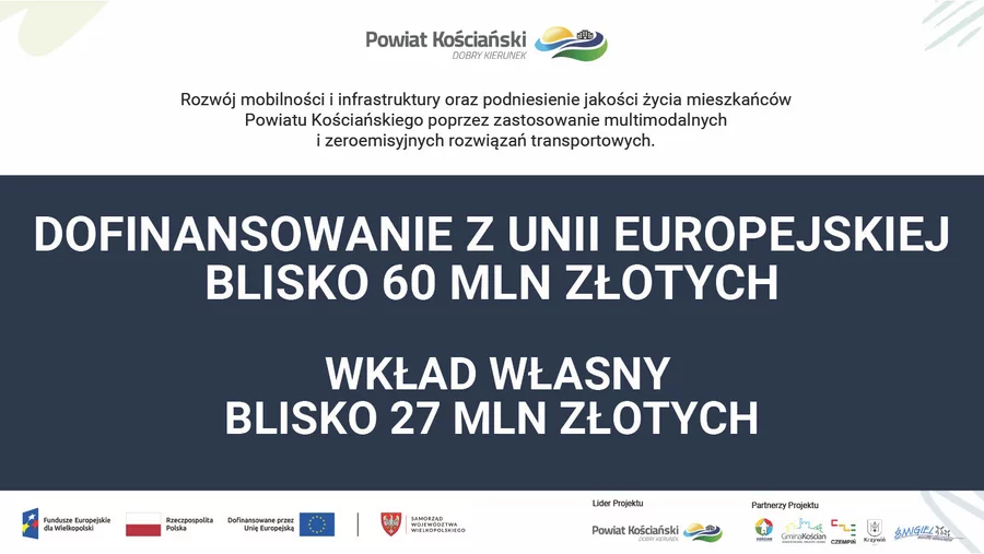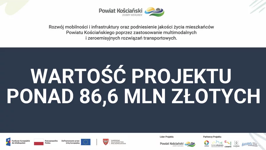 Liderem i wnioskodawcą projektu jest Powiat Kościański, a partnerami wszystkie gminy powiatu. Pozyskana dotacja stanowi blisko 70 procent kosztów kwalifikowanych. Realizacja przedsięwzięcia zaplanowana jest na lata 2026–2027.