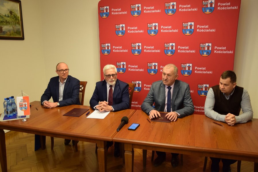 W piątek, 11 lutego samorząd podpisał umowę z wyłonionym w przetargu wykonawcą inwestycji, którym jest Przedsiębiorstwo Drogowe DROGBUD – Gostyń Sp. z o.o.. Podpisy pod umową złożyli starosta Henryk Bartoszewski oraz reprezentujący Drogbud Jerzy Nawrocki i Andrzej Wojciechowski. W spotkaniu uczestniczył także Adam Gabryelski, Zastępca Dyrektora Zarządu Dróg Powiatowych w Kościanie.