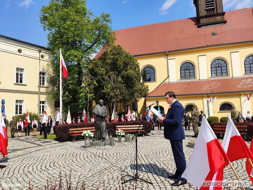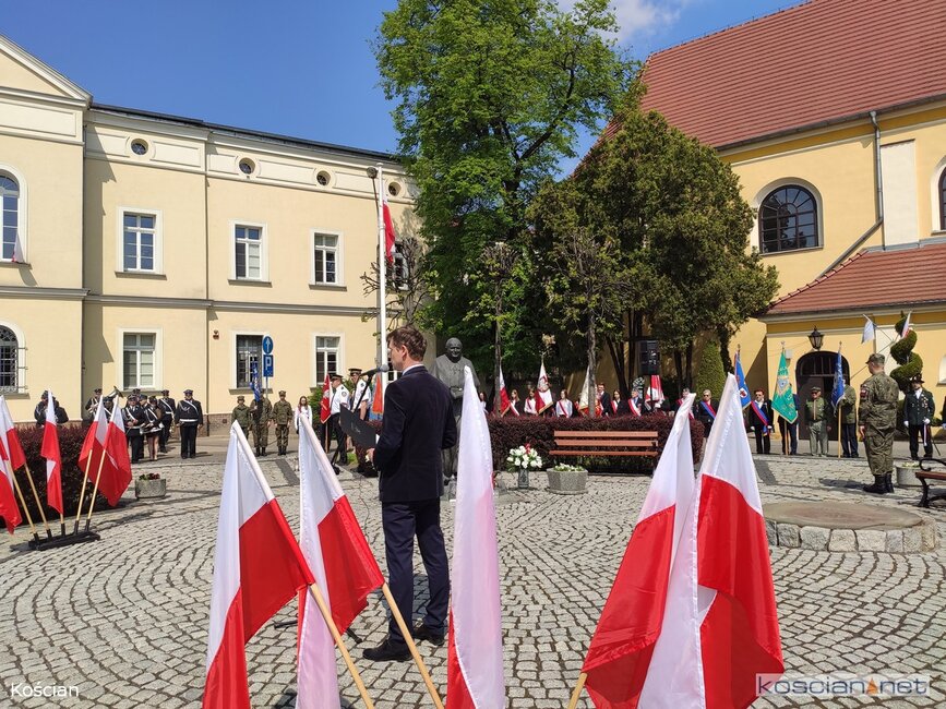 W okolicznościowym wystąpieniu burmistrz Piotr Ruszkiewicz przypomniał historię uchwalenia Konstytucji 3 Maja, jej twórców związanych z Wielkopolską i Ziemią Kościańską oraz znaczenie tego aktu dla kolejnych pokoleń.