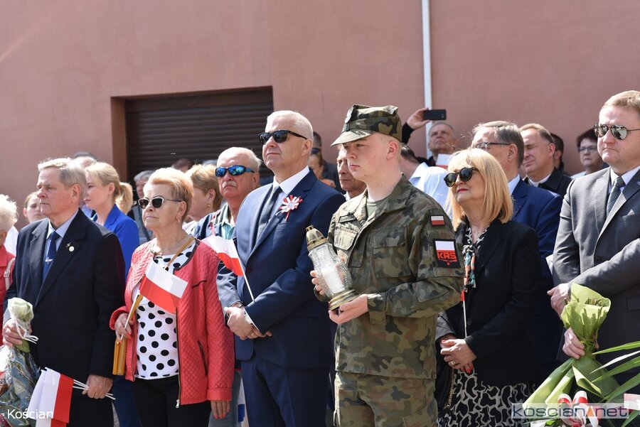 Wśród składających kwiaty przy tablicach upamiętniających poległych mieszkańców Ziemi Kościańskiej byli posłowie Wojciech Ziemniak i Wiesław Szczepański, władze samorządowe Kościana, Gminy Kościan i Powiatu Kościańskiego, delegacje służb mundurowych, organizacji społecznych i politycznych, młodzież szkolna.