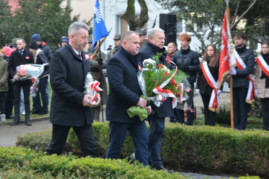 Przybyłe na uroczystość delegacje organizacji społecznych, szkół, instytucji i służb złożyły wiązanki kwiatów pod pomnikiem powstańców. Oprawę muzyczną zapewniła Orkiestra Dęta OSP z Darią Kaczór-Boś.