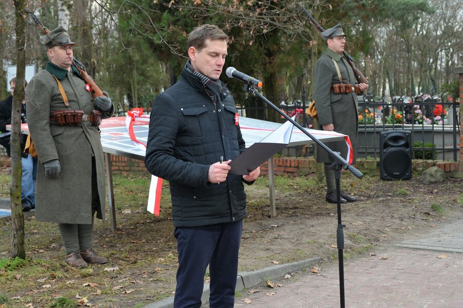 W okolicznościowym przemówieniu burmistrz Piotr Ruszkiewicz przypomniał historię Powstania Wielkopolskiego i bohaterskich dokonań mieszkańców: