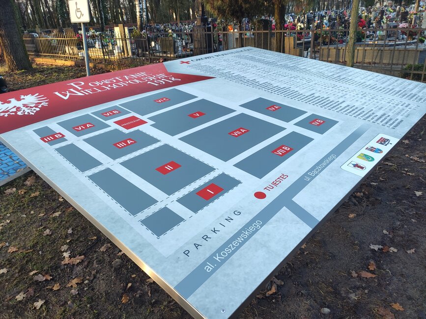 Po zakończeniu uroczystości na Placu Paderewskiego, przed wejściem na cmentarz parafialny samorządowcy odsłonili tablicę informacyjną z zaznaczonymi mogiłami Powstańców Wielkopolskich.