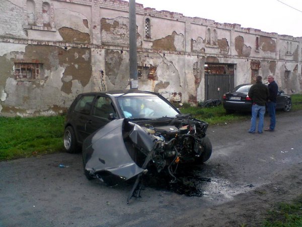 3 października, Piotrowo Pierwsze (gm. Czempiń). Około godz. 8.40 kierujący volkswagenem golfem zjechał na pobocze jezdni i z rozpędem uderzył w starą popegeerowską oborę, odbijając się następnie od słupa linii energetycznej. Kierowcę odwieziono do szpitala w Kościanie. (zk)