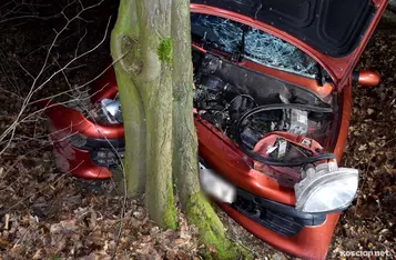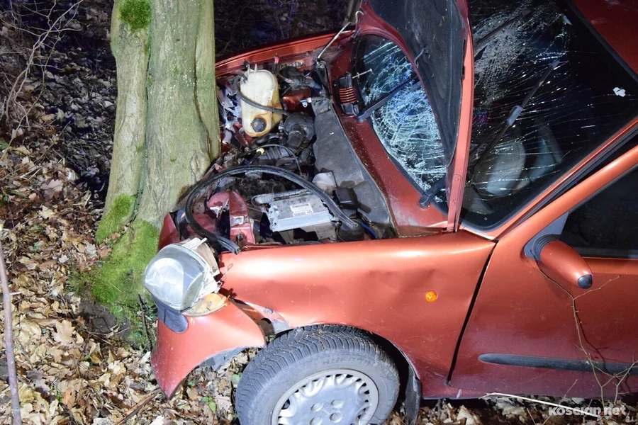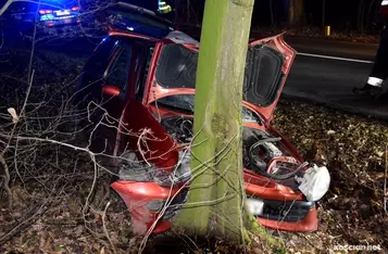 Pijany kierowca fiata wjechał w przydrożne drzewo. Za kierowanie w stanie nietrzeźwości odpowie przez sądem.