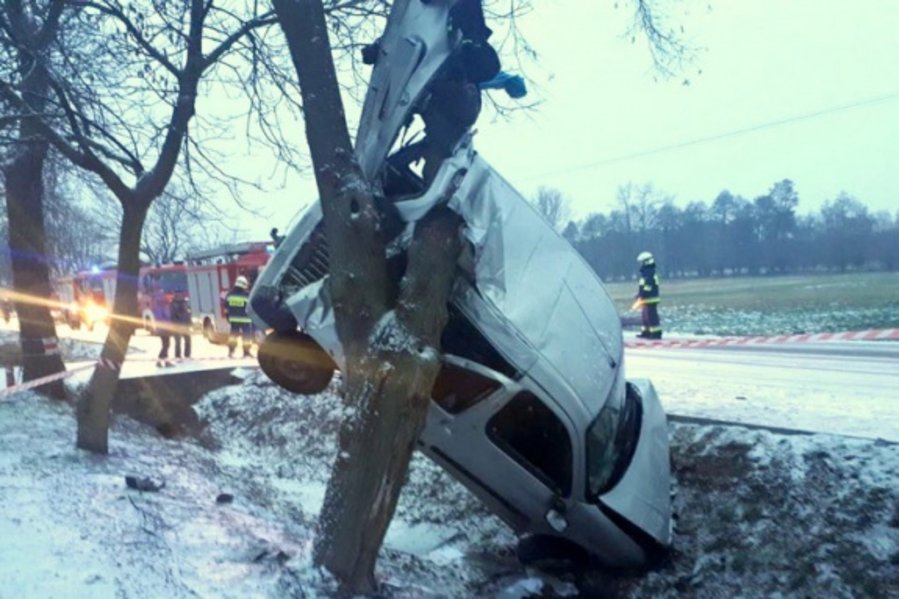 Do zdarzenia doszło w sobotę, o godzinie 7.20, na ośnieżonej drodze wojewódzkiej 308, koło Katarzynina. Kierujący citroenem osiemnastoletni mieszkaniec powiatu kościańskiego podczas wyprzedzania stracił panowanie nad autem, które zjechało z drogi i uderzyło w drzewo. Kierowca i trzech pasażerów samodzielnie opuściło rozbity samochód. Wszystkich przewieziono do szpitala na badania.