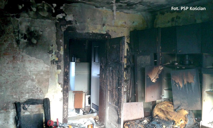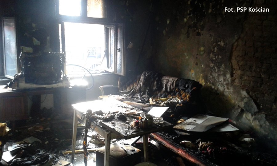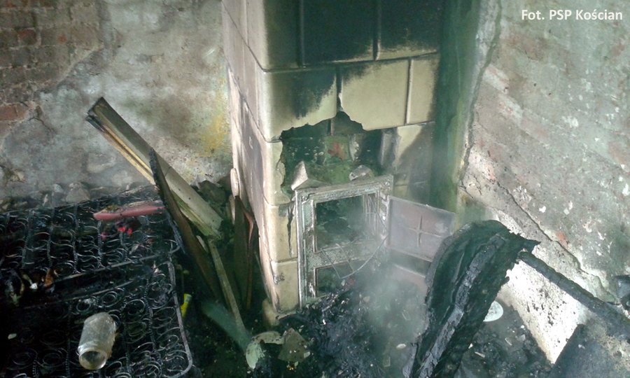 - Tym razem możemy jednoznacznie wskazać przyczynę pożaru. Mieszkający w pokoju mężczyzna rozpalił ogień w piecu kaflowym pomimo jego znacznych uszkodzeń. Spękane kafle w żaden sposób nie izolowały paleniska. Stojący obok fotel i tapczan po kilku minutach zajęły się ogniem a później sprawy potoczyły się błyskawicznie– mówi Andrzej Ziegler Zastępca Komendanta KP PSP w Kościanie. -Mężczyzna przez pewien czas sam próbował gasić ogień, jednak miska z wodą i kran to zdecydowanie za mało, by ugasić wyposażenie pokoju. Na szczęście poddał się i wyszedł na zewnątrz, gdzie pomocy udzielili mu strażacy. Z powodu podtrucia dymem przewieziony został do szpitala.