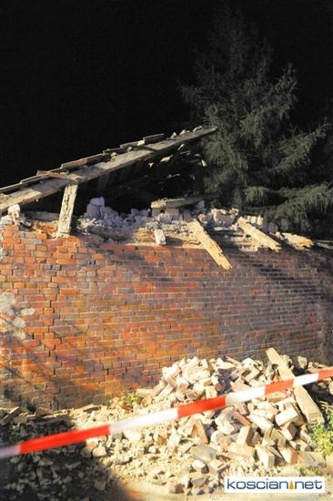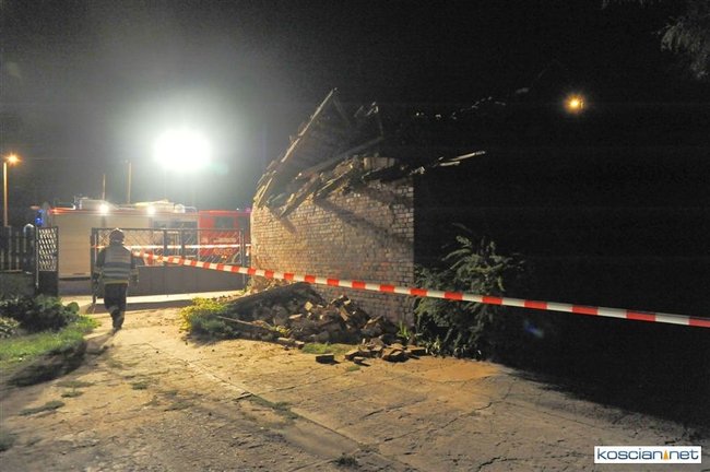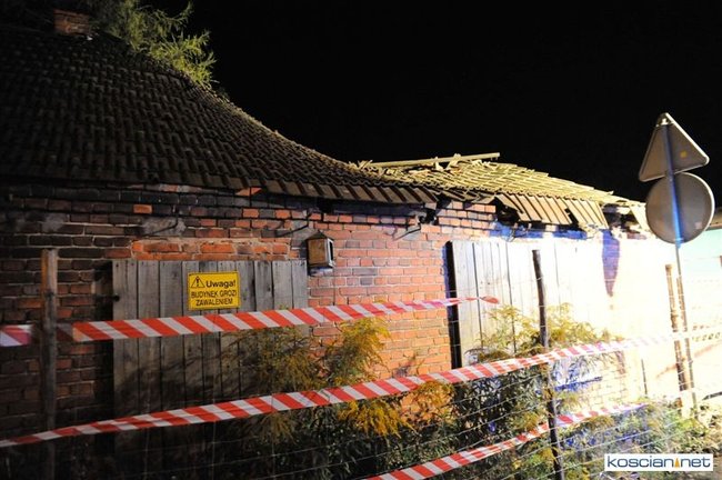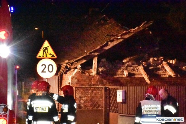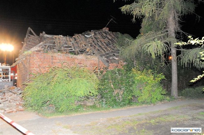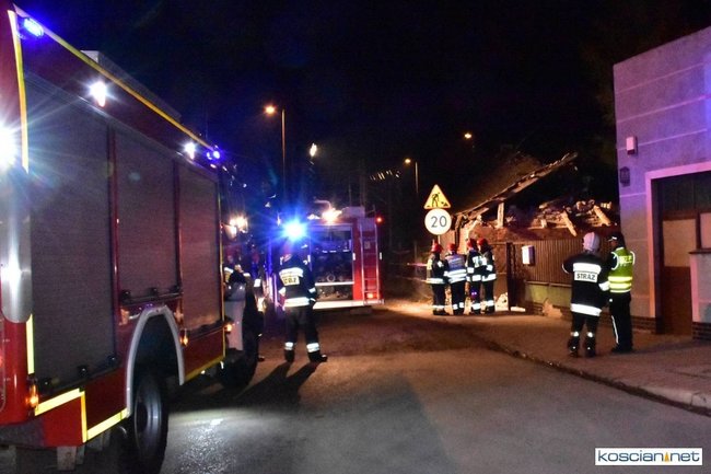 W opuszczonym od lat budynku zawaliła się jedna ze ścian i runął dach. Około godziny 21.30 na miejsce przybyli strażacy z PSP Kościan i OSP Czempiń. Ratownicy sprawdzili, czy pod gruzami nie ma poszkodowanych. Nikogo nie znaleziono.