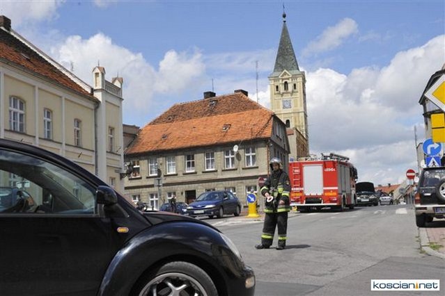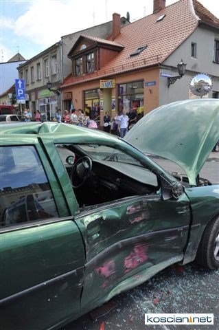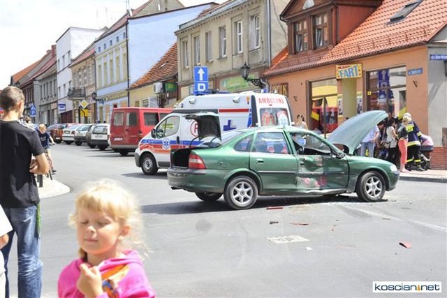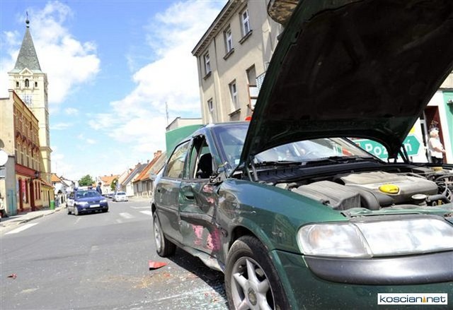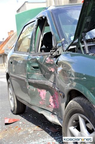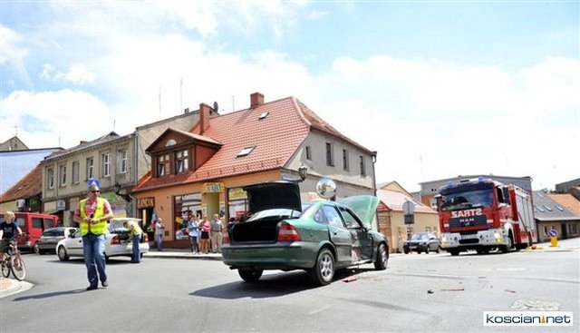 Na skrzyżowaniu ulic Matejki i Kilińskiego w Śmiglu wyjeżdżające spod znaku „stop” ciężarowe volvo uderzyło w bok jadącego główną ulicą osobowego opla. Kierowcę osobówki z urazem głowy odwieziono do kościańskiego szpitala.