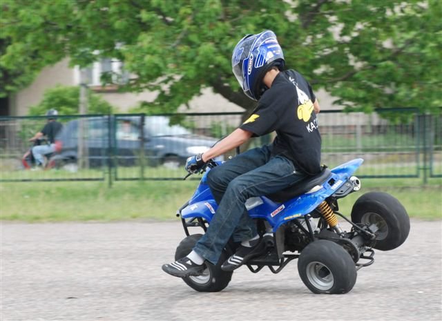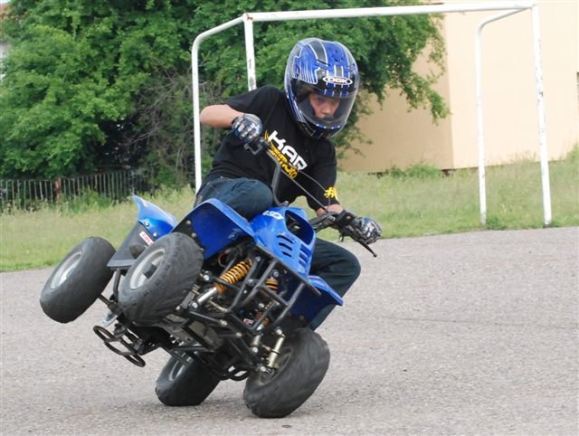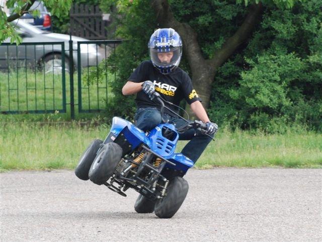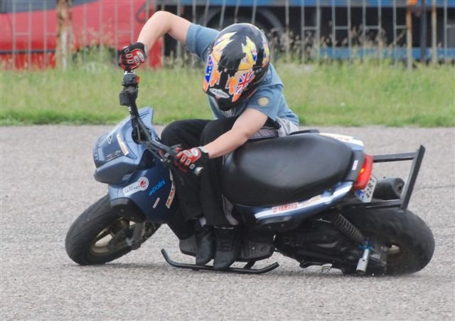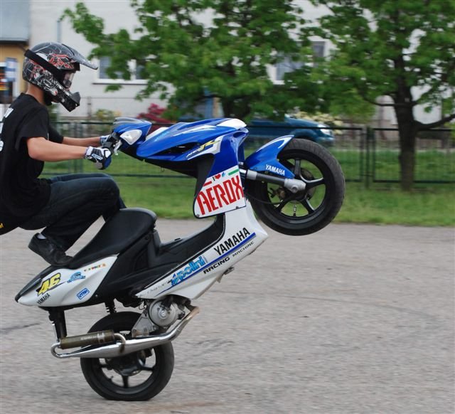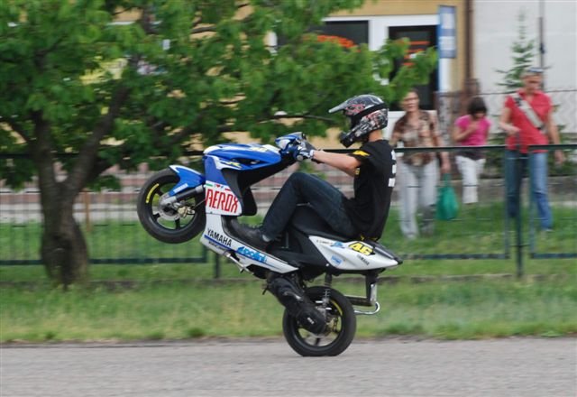 Prawdziwy pokaz to dał Maciej na sliderku;) Kolega na roxie nie pokazał zbyt wiele, a jazda na kole była głownie zaslugą mocy skutera, widac bylo ze wystarczylo delikatnie go poderwac i z gazu na gumie stawał. Szkoda ze nie było sprawnościówki;p