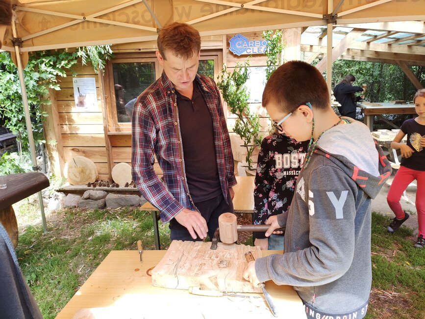 Pod czujnym okiem artysty rzeźbiarza Mariana Malińskiego piętnaścioro uczestników warsztatów przez pięć dni poznawało tajniki rzeźbienia w drewnie.