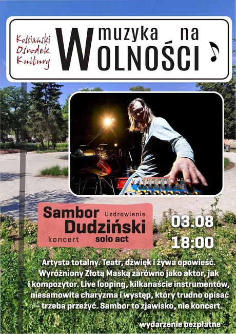 Przed nami trzeci koncert cyklu „Muzyka na Wolności”. Tym razem na Placu Wolności w Kościanie wystąpi multiinstrumentalista Sambor Dudziński.