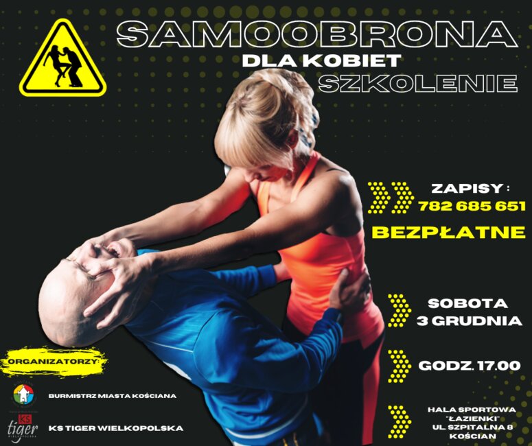Klub Sportowy TIGER Wielkopolska i Burmistrz Miasta Kościana zapraszają na bezpłatne szkolenie samoobrony dla kobiet.