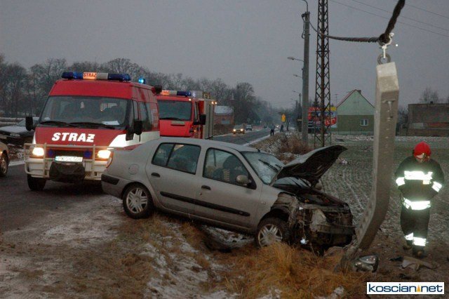 Dziś rano, mieszkanka Czempinia na drodze Iłowiec - Czempiń zjechała na pobocze i uderzyła w słup linii energetycznej. Na miejsce zdarzenia przybyła policja i pogotowie ratunkowe z Kościana.