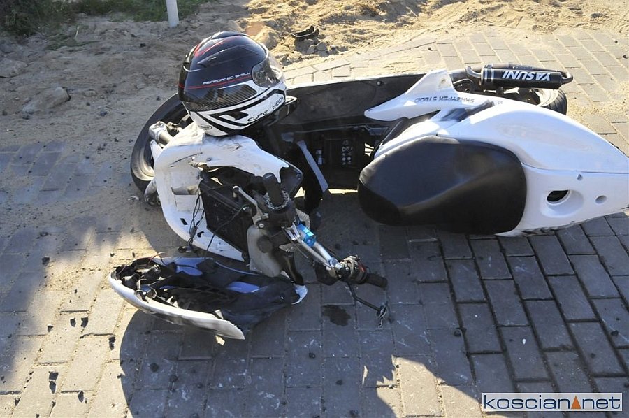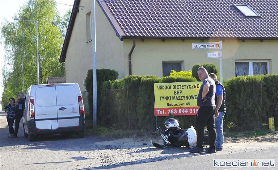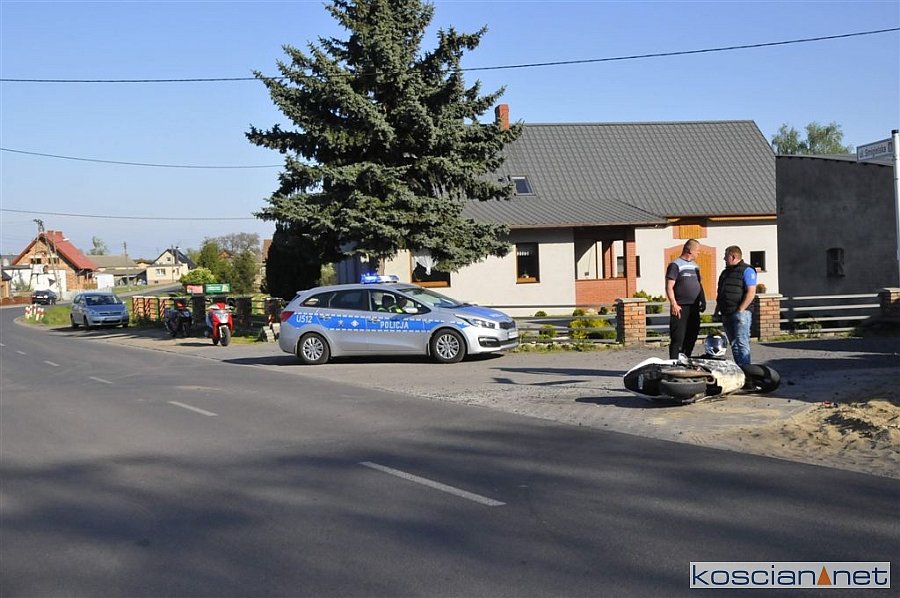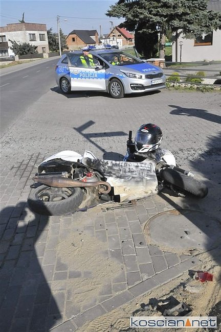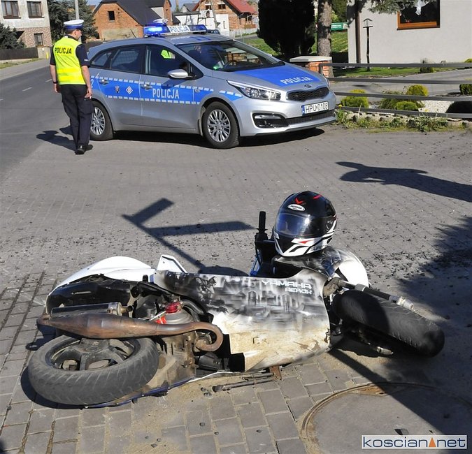 Do zdarzenia doszło w czwartek, 25 kwietnia, około godziny 16.30 w Nowej Wsi. Uczestniczyły w nim jadące w tym samym kierunku: skuter i dostawczy citroen. Kierujący skuterem nie zachował bezpiecznej odległości od poprzedzającego go pojazdu i uderzył w tył skręcającego w lewo citroena.