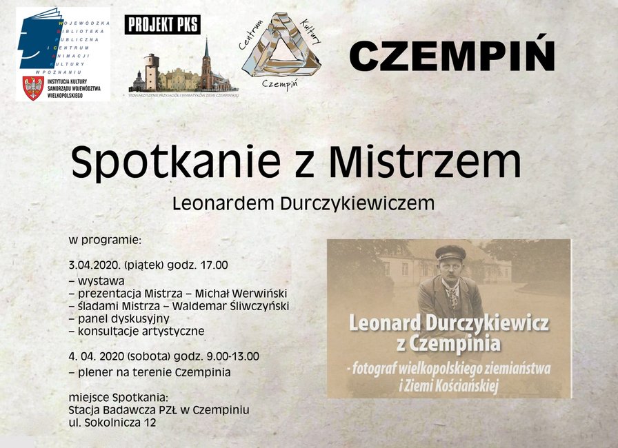 Fundacja Projekt PKS, Stowarzyszenie Przyjaciół i Sympatyków Ziemi Czempińskiej, Centrum Kultury Czempiń oraz Wojewódzka Biblioteka Publiczna i Centrum Animacji Kultury w Poznaniu zapraszają fotografów i pasjonatów fotografii do udziału w spotkaniu oraz w plenerze, który odbędzie się 3 i 4 kwietnia w Czempiniu.
