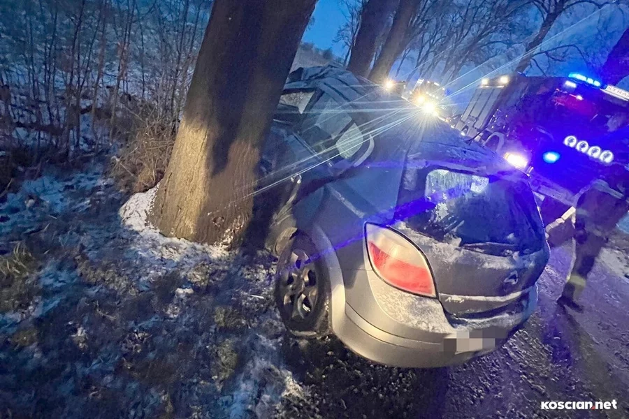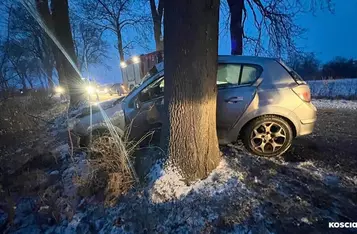 18 stycznia 2024Ślisko! Jedno auto w rowie, drugie rozbite o drzewo