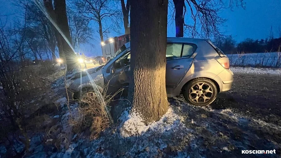 Do pierwszego ze zdarzeń doszło na drodze Stare Bojanowo – Spławie. Kierująca oplem, 44-letnia mieszkanka gminy Śmigiel, nie dostosowała prędkości do warunków na drodze, przez co straciła panowanie nad samochodem i uderzyła w drzewo. Kobietę przewieziono do szpitala na badania.