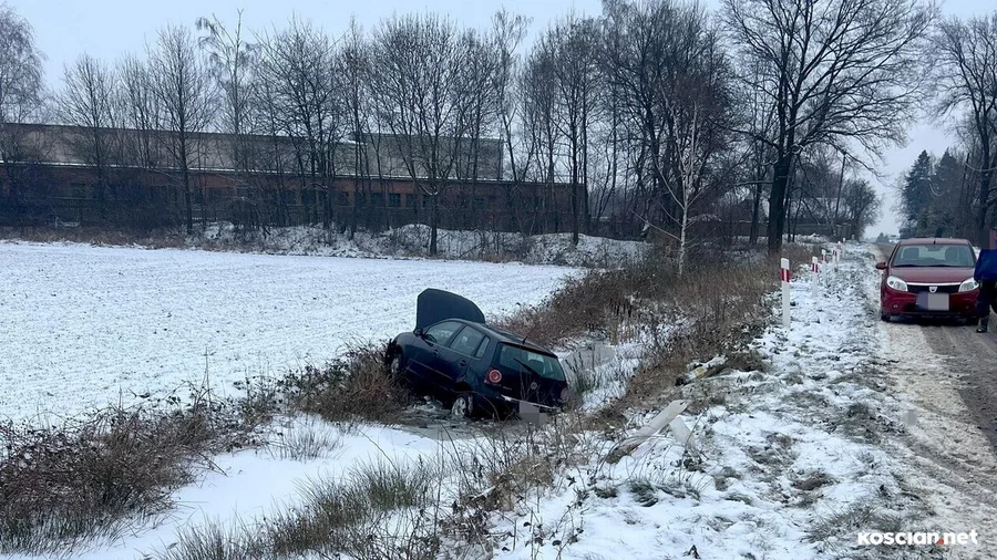 Zbyt szybko na oblodzonej drodze poruszał się także volkswagen prowadzony przez 64-letnią mieszkankę gminy Śmigiel. Kobieta straciła panowanie nad autem i zakończyła jazdę w rowie. Do kolizji doszło na drodze Nietążkowo - Robaczyn.