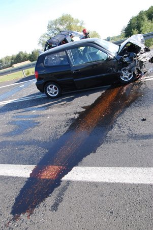 Do wypadku doszło na obwodnicy Śmigla około godziny 10. Czołowo zderzyły się volkswagen polo i ford fiesta. Jak wynika z zeznań świadka kierowca forda jadący w kierunku Leszna zaczął nagle zjeżdżać na lewy pas drogi, którym w stronę Kościana jechał volkswagen.Siła czołowego zderzenia była tak duża, że obróciła pojazdy, a ford wypadł z drogi i zatrzymał się na barierze dzielącej drogę od skarpy.