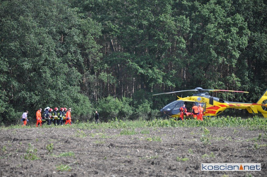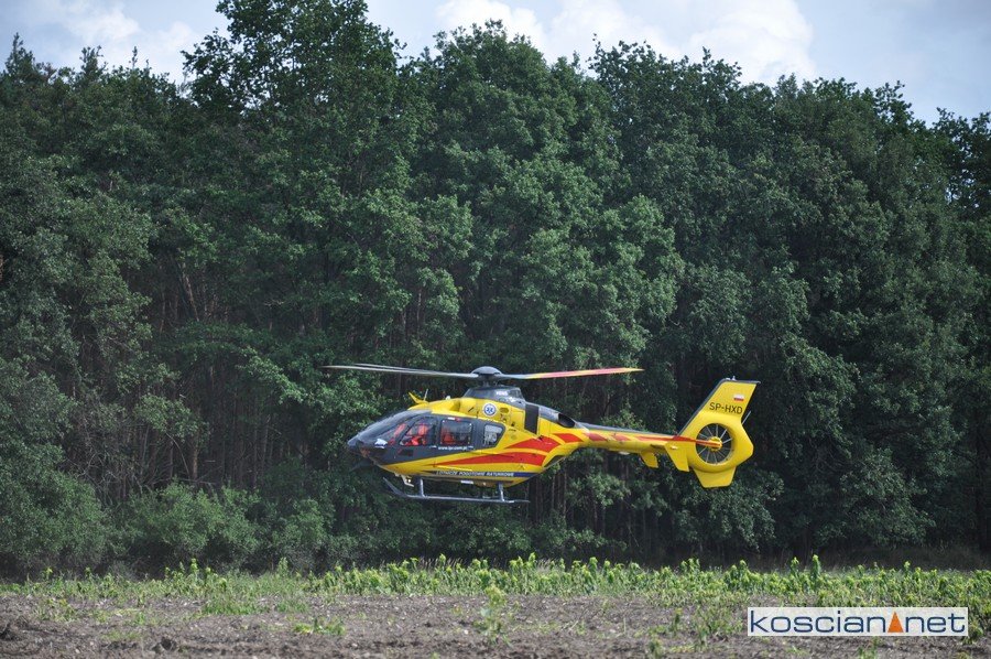 Do zdarzenia doszło w niedzielę, 6 września, około godziny 10.30 na polu w pobliżu stadionu hippicznego w Racocie. Podczas przejażdżki kobieta spadła z konia. Na miejsce wysłano karetkę pogotowia, strażaków z PSP Kościan i OSP Racot oraz śmigłowiec Lotniczego Pogotowia Ratunkowego. Ranną przetransportowano śmigłowcem do szpitala w Lesznie.