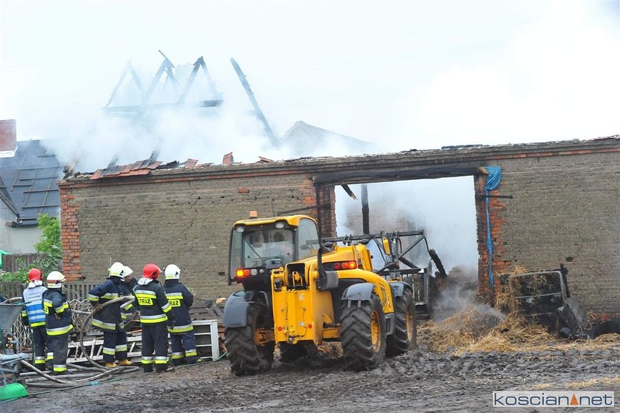 Pożar wybuchł około godziny 18., gdy nad wsią przechodziła burza. Wywołało go prawdopodobnie uderzenie pioruna. Z pożarem walczyło dziewięć zastępów straży pożarnej. Wypełniona słomą stodoła doszczętnie spłonęła i nadaje się do rozbiórki.