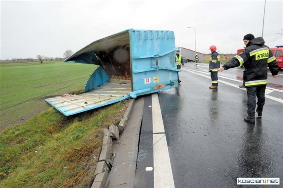Do wypadku doszło 18 listopada 2015 roku. Był to wietrzny dzień. Na drodze krajowej nr 5 przy wyjeździe z Kościana mijały się dwie ciężarówki z naczepami mercedes benz actros i scania. Za kierownicą pierwszego z tirów siedział 40-latek z powiatu poznańskiego. Drugim kierował 39-latem z powiatu górowskiego.