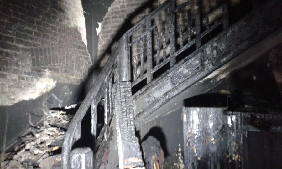Inspektor nadzoru budowlanego wydał zakaz użytkowania parteru i klatki schodowej budynku, która uległa całkowitemu spaleniu. Fot. KP PSP Kościan.