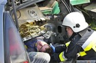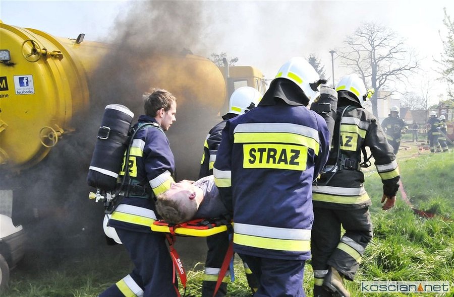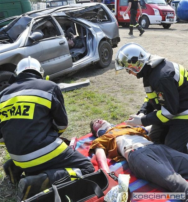 Strażacy wyjeżdżali na sygnale do zainscenizowanego wypadku na przejściu dla pieszych i kolizji ciężarówki z samochodem osobowym. Wzywani byli do pojazdu, z którego wyciekała niezidentyfikowana ciecz, do usuwania zwierząt z drogi oraz do pomocy w poszukiwaniu zaginionej osoby.