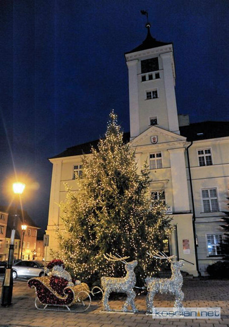 Wysoką na dziesięć metrów choinkę na kościańskim rynku przystrojono siedmioma tysiącami światełek. Tuż obok niej pojawił się zaprzęg Świętego Mikołaja. Świątecznie prezentuje się także deptak, na którym anioł gra na harfie. Lampki zdobią także mosty i ronda. Święta coraz bliżej...