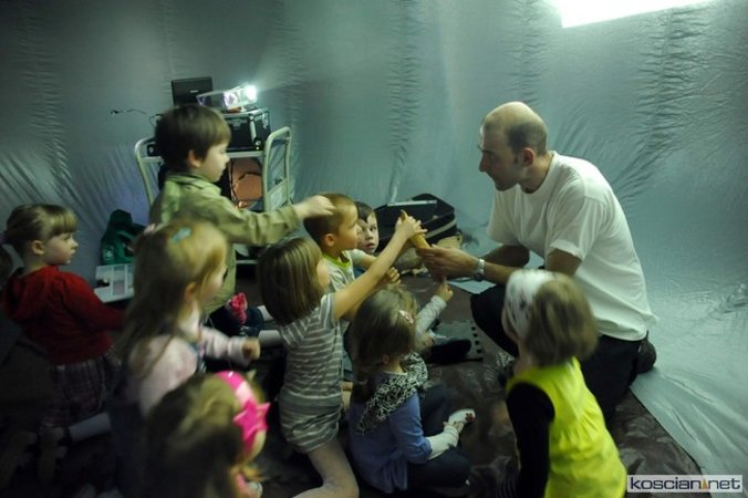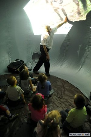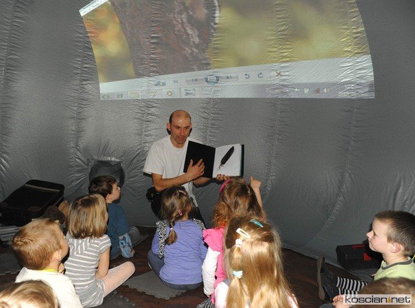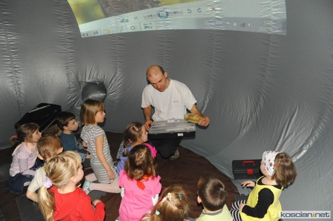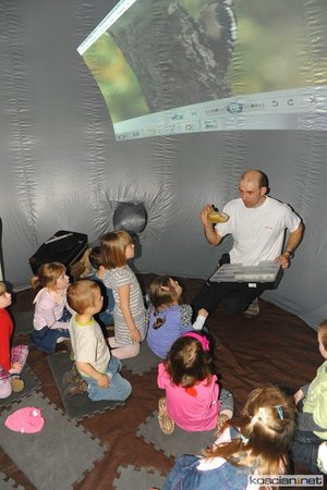 Dzieci z kiełczewskiego przedszkola ,,Zwinne szkraby’’ w niecodzienny sposób przyswajały sobie wiedzę o świecie zwierząt. W przedszkolnym ogródku ustawiono balon, we wnętrzu którego dzieci słuchały opowieści o zwierzętach. Pokazem tym podsumowano projekt edukacyjny ,,W świecie zwierząt.’’