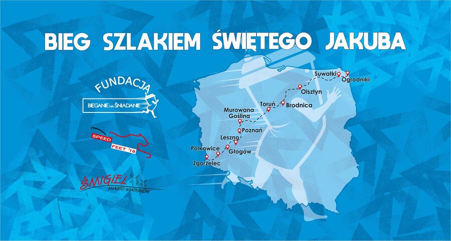 - W poniedziałek, 13 czerwca, o godzinie 6 rano wyruszymy z miejscowości Ogrodniki przy granicy polsko-litewskiej na „Bieg Szlakiem świętego Jakuba”, Wspólnie z biegaczami ze Speed Feet '16 oraz całą masą pozytywnie zakręconych biegaczy „przetniemy” Polskę, aby w piątek, 17 czerwca, do godziny 23:59, dotrzeć do Zgorzelca, czyli do granicy polsko-niemieckiej – informuje na swoim Facebooku organizator biegu - Fundacja Bieganie na Śniadanie. Partnerem biegu jest Gmina Śmigiel.
