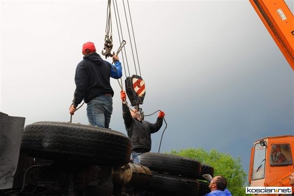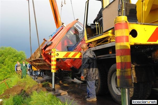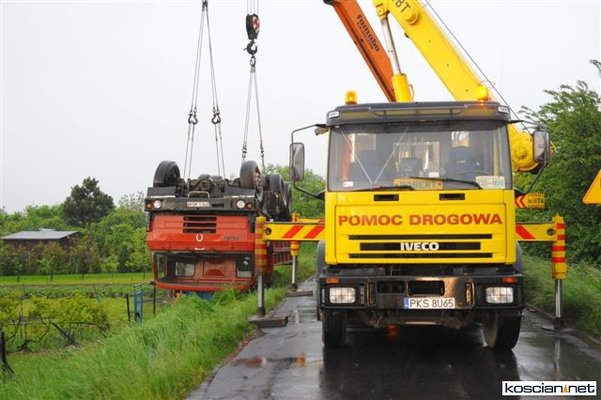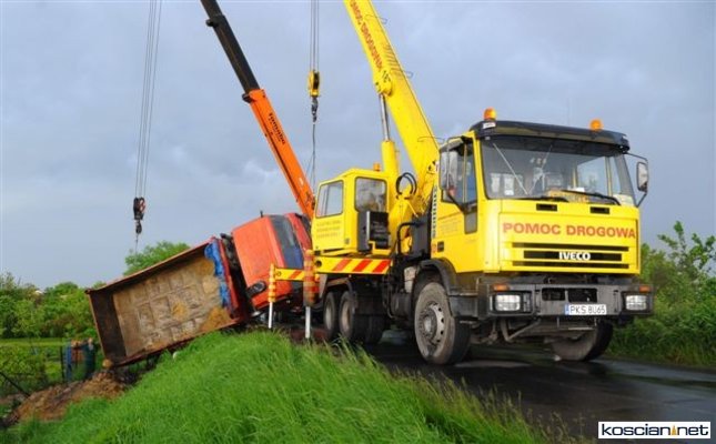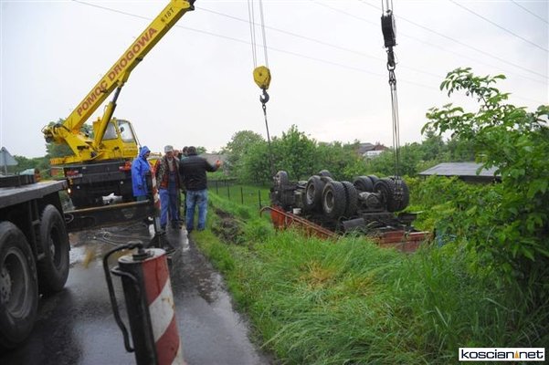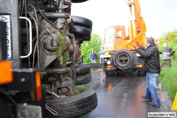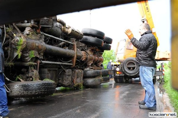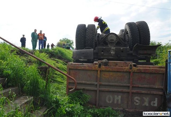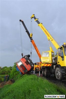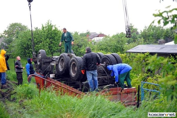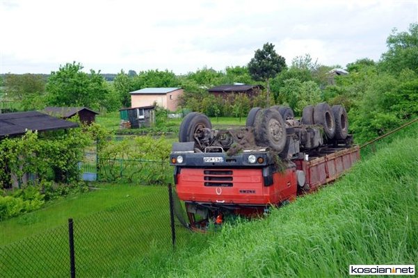 Wczoraj (24 maja) około godziny 17 na drodze pomiędzy między Sierakowem a Szczodrowem podczas wymijania się dwóch jadących z naprzeciwka pojazdów ciężarówka tatra spadła z kilkumetrowej skarpy do ogródka działkowego. Kierowca ważącej jedenaście ton ciężarówki wyszedł ze zdarzenia bez szwanku