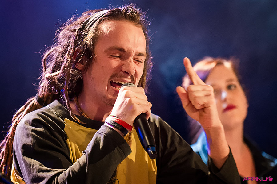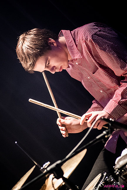 The Pineal (ang, po polsku - szyszynka), KOK, prima aprilis. Fajny zespół, fajny koncert. Wokalistka ma płuco. Jak ryknie, Adele czmycha do mysiej dziurki. :) Gitarzysta z wyglądu łapie się do Fleet Foxes, ale przyłoić też umie. Sekcja - basistka naprawdę żwawo przebiera długimi paluszkami po pięciu strunach. (poproszę o porównanie do innej słynnej basistki - ja nie znam, bo basówa jest trochę niedziewczyńska). Perkusista nadąża, by trzymać rytmicznie w ryzach te wszystkie jazzowe harmonie. Saksofonista ma ładny instrument, który czasem nawet było słychać :) Ale i tak jest najciekawiej, jak przyczadują: łezka się w oku kręci i wracają czasy gdy się słuchało funko-punko-metalu: Rage Against The Machine, Faith No More, czy Living Colour… Cała drużyna zgrana jest i biegła. Choć dość statyczna. Na szczęście jest 2BLOKI, który rozkicał całą scenę niczym wiewiórka nakręcona kwietniowym słoneczkiem. I jeszcze maślankę kościańską lubi :)
