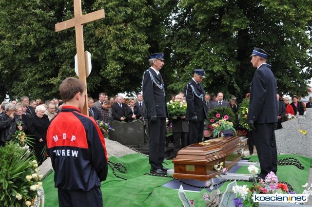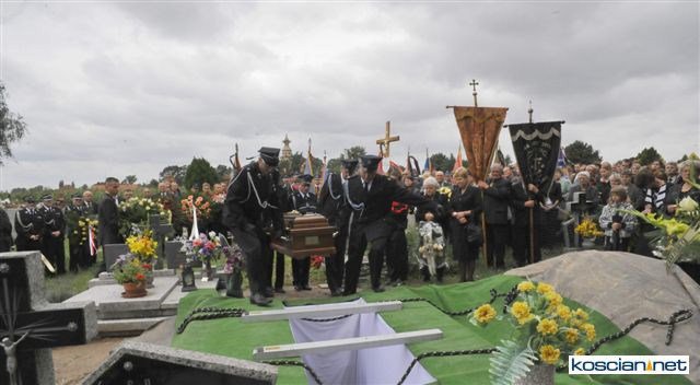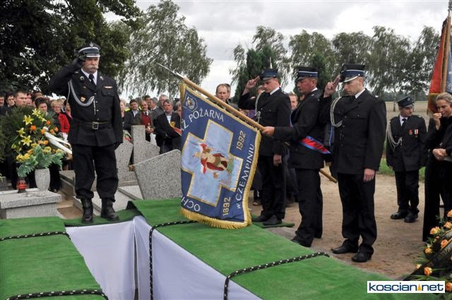 Na cmentarzu w Wyskości pożegnano druha Kazimierza Gołembkę, który zmarł po zakończeniu akcji wypompowywania wody w jednej z zalanych kościańskich szkół. W pogrzebie oprócz bliskich uczestniczyli strażacy z PSP Kościan i ochotnicy z całego powiatu