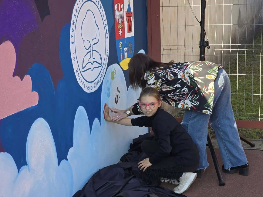 Po uroczystości uczniowie, którzy wnieśli szczególny wkład w powstanie muralu, odcisnęli na nim swoje dłonie, pozostawiając trwały ślad swojej pracy. Wydarzenie zakończyło się podziękowaniami, gratulacjami i wspólnym zdjęciem uczestników na tle barwnego malowidła.