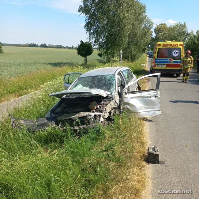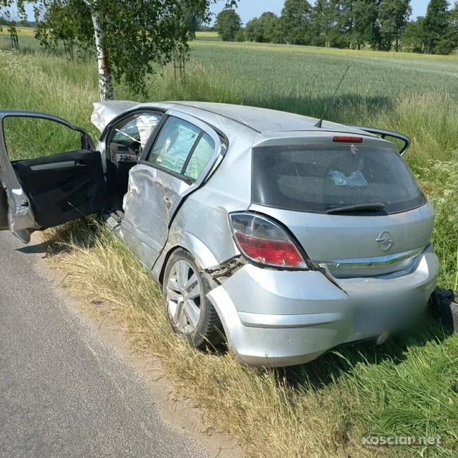 Jadący w kierunku Bieżynia 28-latek z powiatu kościańskiego uderzył w przydrożne drzewo.