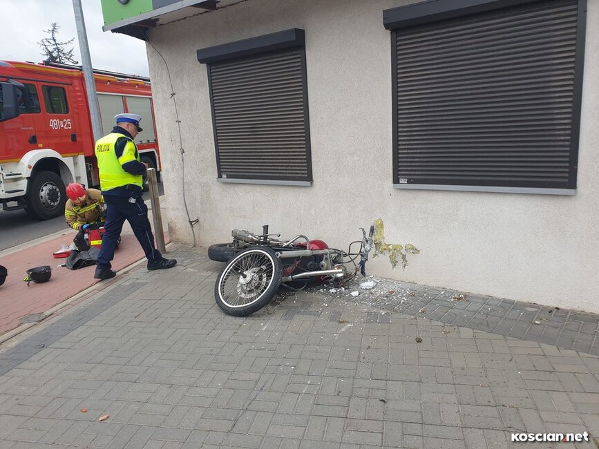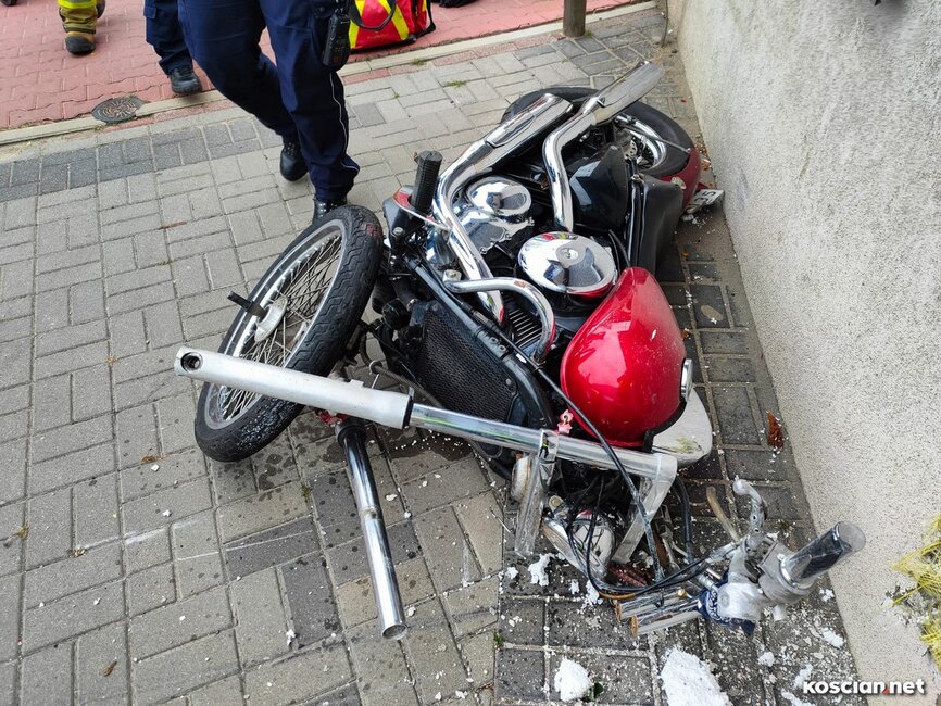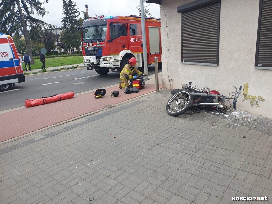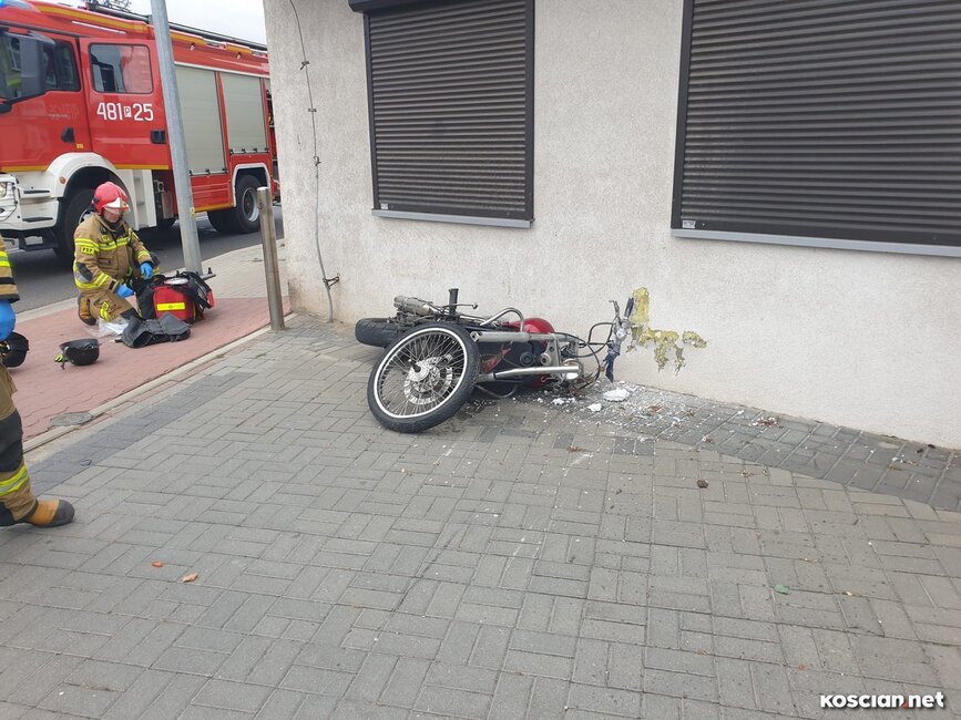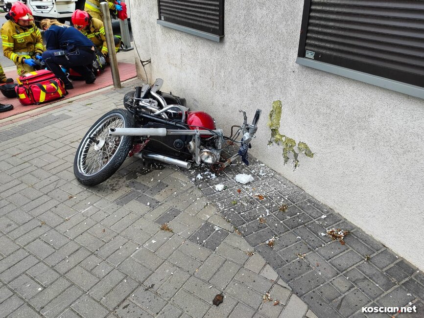 - Jadący motocyklem kawasaki, 43-letni mieszkaniec Kościana, zjechał z drogi, uderzył w słupek, a następnie w ścianę budynku – informuje Dawid Kryś, oficer prasowy KP PSP w Kościanie. – Na początku działań motocyklista był nieprzytomny, w trakcie działań odzyskał przytomność i został przetransportowany do szpitala przez Zespół Ratownictwa Medycznego.
