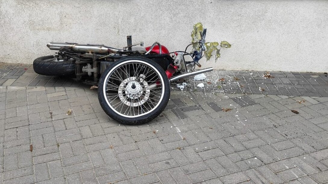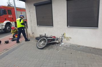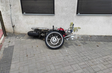 Pijany motocyklista zjechał z drogi i uderzył w ścianę budynku. Mężczyznę przetransportowano do szpitala.