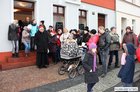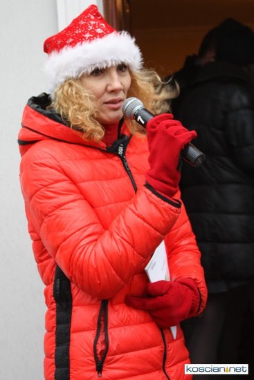 W wigilijne przedpołudnie burmistrz Śmigla zaprosiła mieszkańców na wspólne śpiewanie kolęd przed ratuszem.