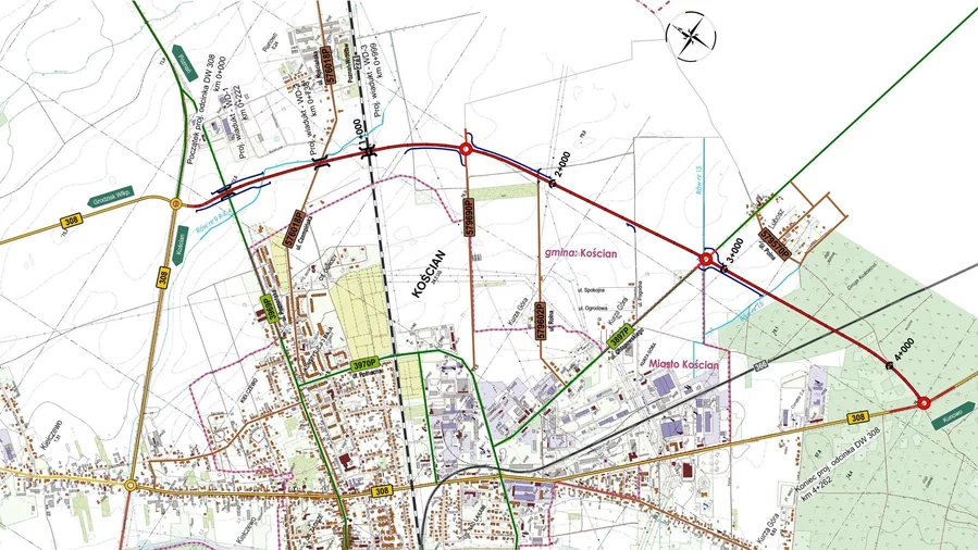 Po północnej stronie Kościana powstanie nowa trasa, która odciąży miasto i poprawi komunikację w całym powiecie. W ramach zadania zaplanowaliśmy budowę 3 obiektów mostowych, budowę 3 rond, przebudowę infrastruktury technicznej, wykonanie odwodnienia, oświetlenia oraz nowych nasadzeń zieleni, likwidację nieczynnego torowiska oraz budowę niezbędnych dróg dojazdowych.