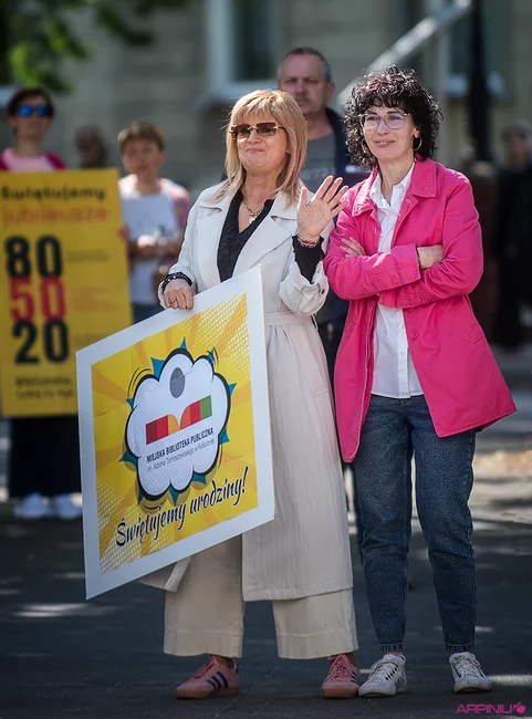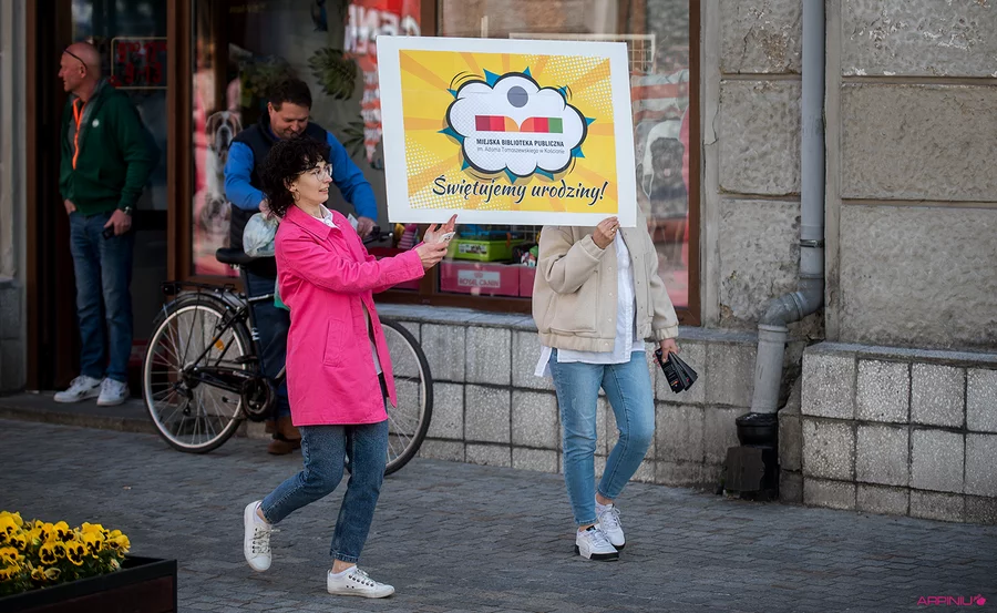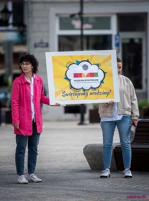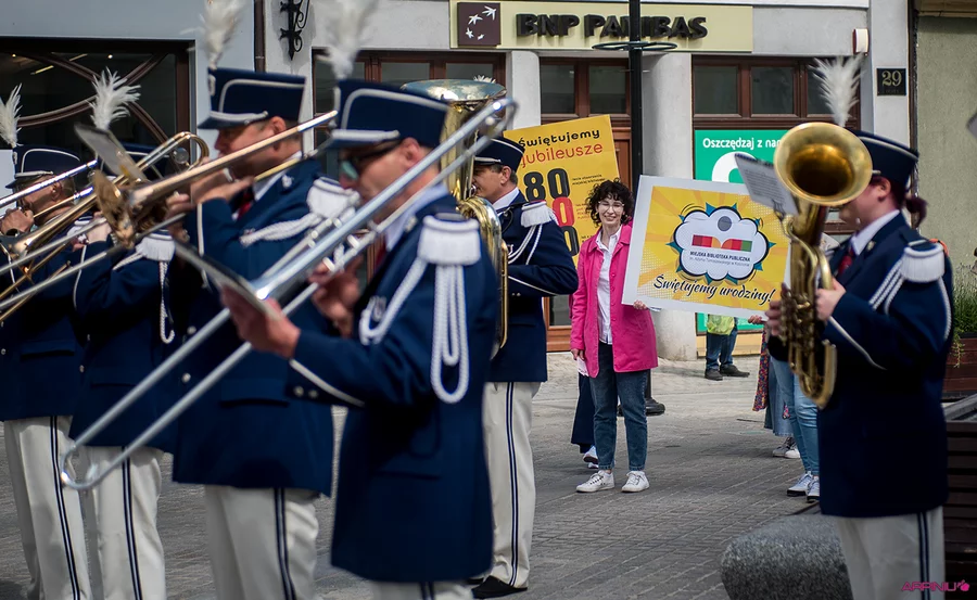 W sobotę, 24 maja, bibliotekarze i muzycy Orkiestry Dętej Ton umówili się na robienie urodzinowego hałasu i wyszło im to znakomicie. Podczas przemarszu z Rynku przed siedzibę biblioteki i koncertu orkiestry częstowano przechodniów cukierkami oraz rozdawano okolicznościowe zakładki do książek. Emocji i radości nie brakowało.