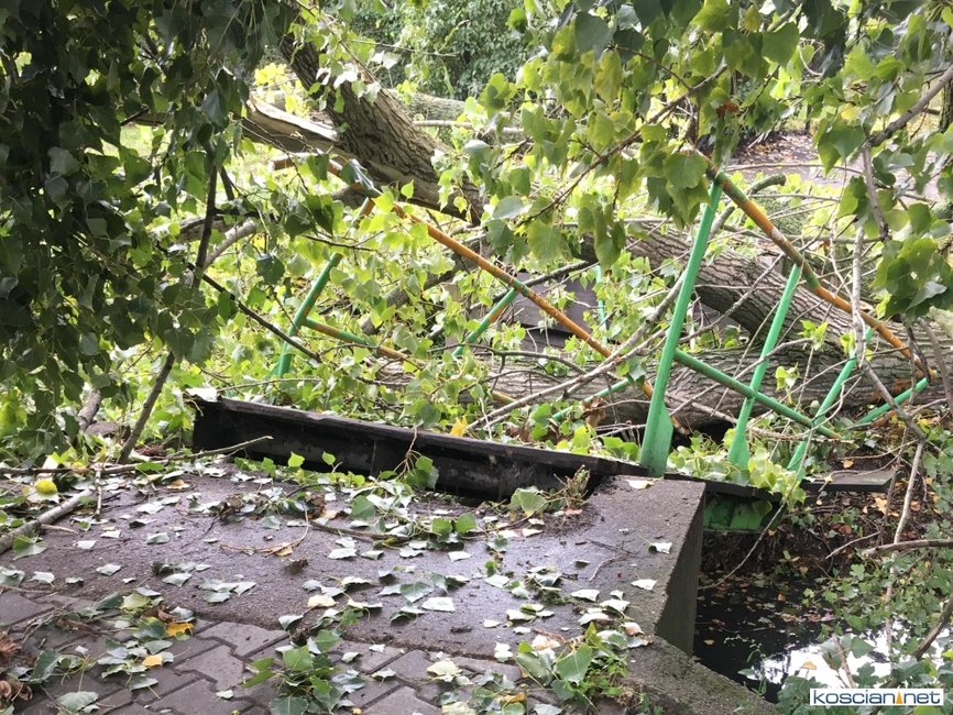 Powalone przez wiatr drzewo zniszczyło mostek przy ulicy Torowej w Kościanie.