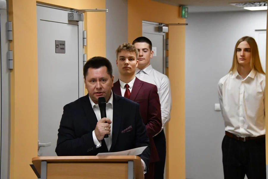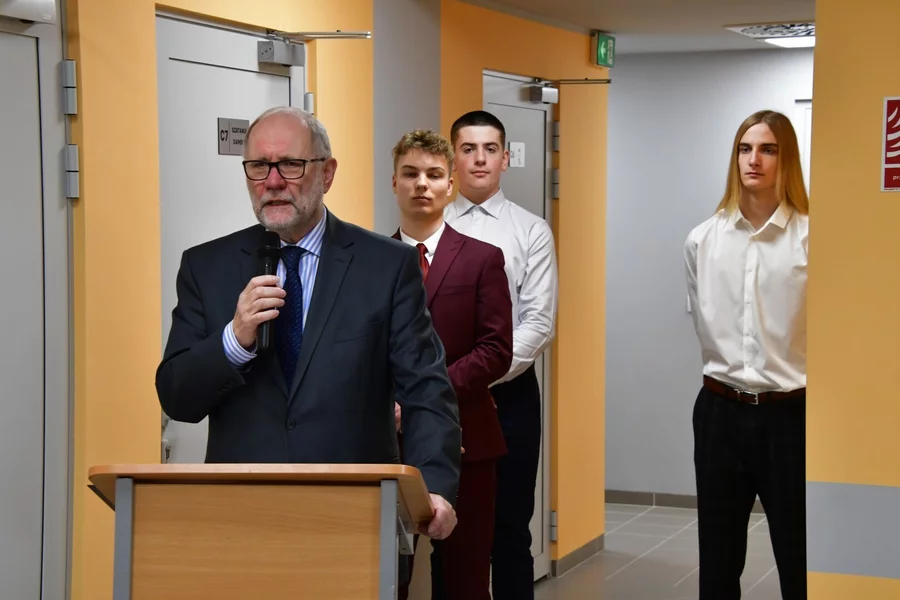 Gdyby ktoś zapytał uczniów, absolwentów Zespołu Szkół Ponadpodstawowych imieniem Franciszka Ratajczaka w Kościanie , jaki motyw literacki byłby najprostszy do analizy na maturze. Wszyscy zdecydowanie odpowiedzieliby, że jest to motyw peregrynacji. Bowiem każdy uczeń naszej szkoły przez lata doświadczał owej wędrówki. Trasa Wielichowska – Młyńska, Młyńska - Wielichowska jest znana nam wszystkim. Moglibyśmy przemierzać ją z zamkniętymi oczami. Tym samym dzisiejszy dzień jest dla nas przełomem. Po pierwsze, będziemy uczyć się praktycznej nauki zawodu w nowoczesnych, w pełni wyposażonych salach. Po drugie, będziemy uczyć się w naszej szkole. Po trzecie, kończy się wędrówka klas na ulicę Młyńską. Po czwarte, nasza szkoła wkracza w nowy wymiar edukacyjny. I za to z całego serca w imieniu wszystkich uczniów serdecznie dziękuję. Aż w końcu jest jeszcze po piąte, rozpoczynamy analizę nowego motywu… dużej stabilizacji – mówił Grzegorz Kaźmierczak.