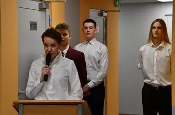 Gospodarzem uroczystości była dyrektor szkoły Monika Kunc, a w roli prowadzącego wystąpił uczeń Gracjan Słodzinka.