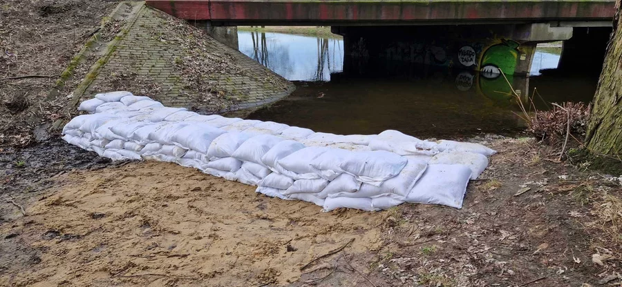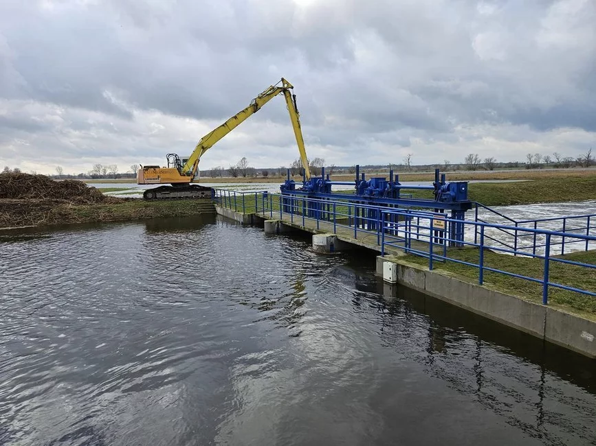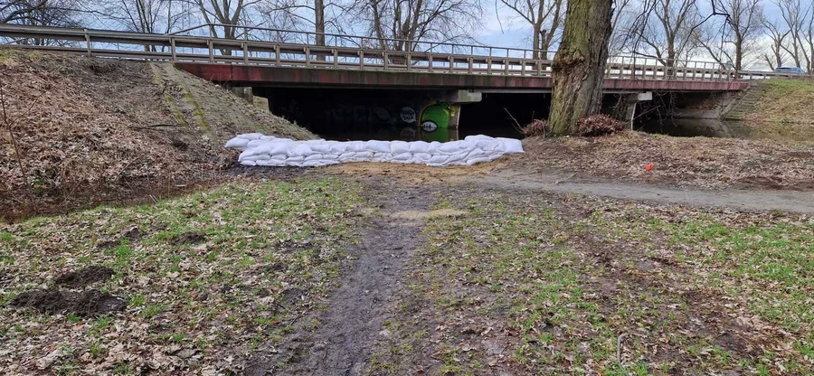 18 lutego 2024W okolicy Gryżyny uzupełniono wyrwy w wałach przeciwpowodziowych