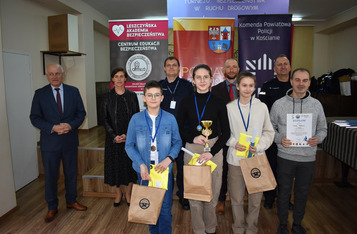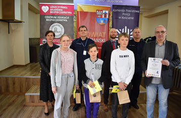 Każdy z uczestników otrzymał nagrody i upominki, które wręczali: Komendant Powiatowy Policji w Kościanie podinsp. Robert Przyjemski wraz z swoim zastępcą podinsp. Tomaszem Garsteckim, Wójt Gminy Kościan Andrzej Przybyła, wiceburmistrz Śmigla Marcin Jurga, wicedyrektor SP 3 w Kościanie Dorota Żak-Gabryelska.