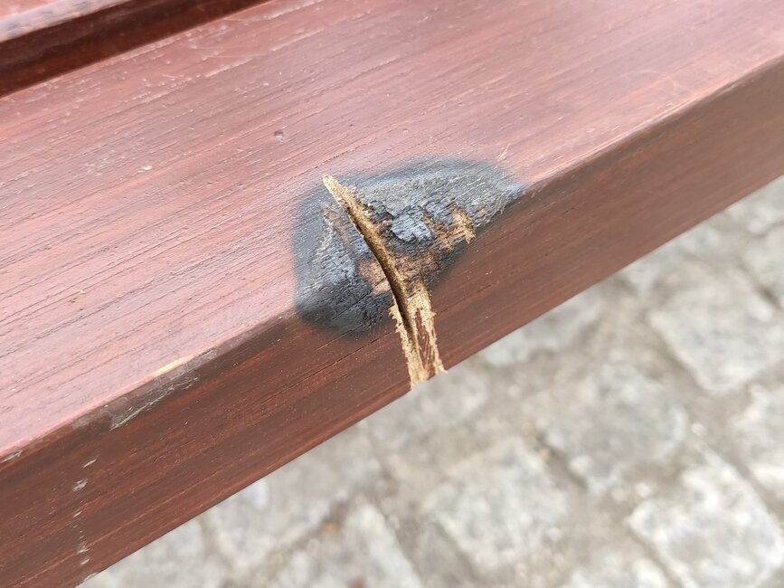Odnowione w ubiegłym miesiącu ławki przy „grzybku” padły ofiarą wandali.