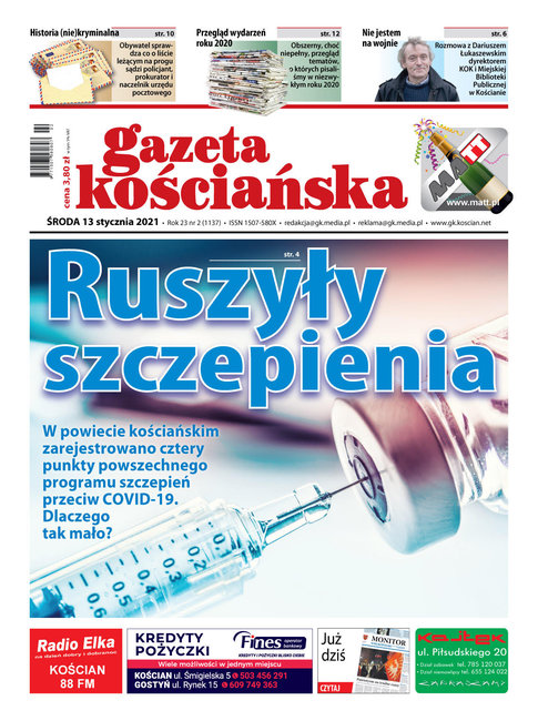 W styczniu ruszyły szczepienia przeciwko COVID-19. W powiecie kościańskim zarejestrowano tylko cztery punkty szczepień: po jednym w Kościanie i Śmiglu oraz dwa w Krzywiniu. Dodzwonienie się do nich graniczyło z cudem. W pierwszej kolejności szczepiono pensjonariuszy domów opieki i osoby po 70. roku życia. Dwa numery pod rząd szczepienia były tematem jedynkowym. Panujący w systemie szczepień chaos najlepiej opisuje zadane na pierwszej stronie „GK” pytanie: jak zapisać się na szczepienie przeciwko COVID-19 i nie zwariować?