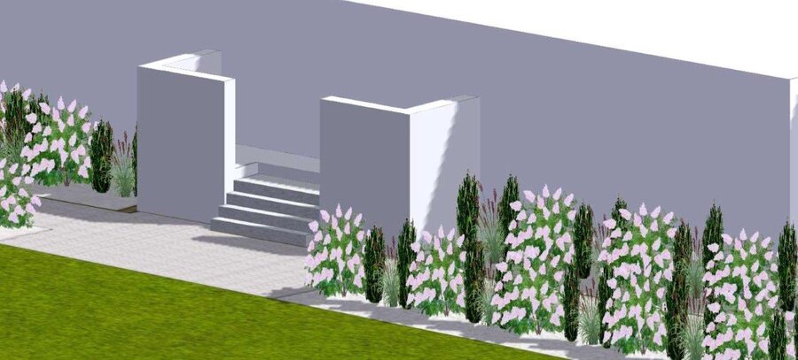 Projekt nasadzeń wykonali uczniowie technikum. Przewiduje posadzenie przed urzędem między innymi cisów, miskantów chińskich i hortensji bukietowych. Między roślinami wyłożony zostanie ozdobny kamień.